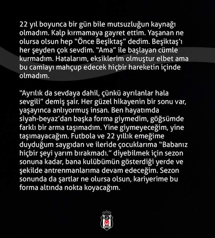 Beşiktaş’ta alınan kararın ardından Mert Günok ve Necip Uysal, kadro dışı bırakılmıştı. Siyah-beyazlılarda takım bulması söylenen ve sezonun kalan bölümünde kadro planlamasına dahil edilmeyeceği belirtilen Necip Uysal, sosyal medya hesabı üzerinden yaptığı paylaşım ile gündem oldu. İşte tecrübeli oyuncunun emeklilik sözleri…