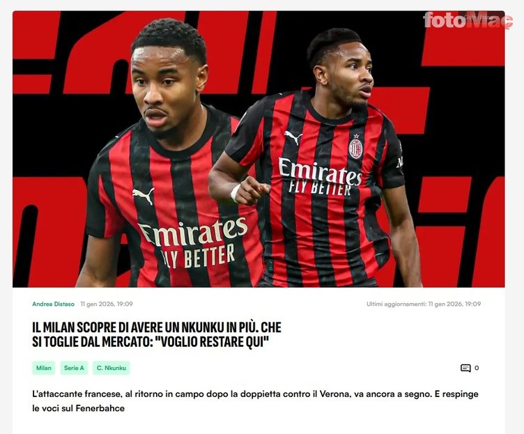 Hücum hattını güçlendirmek için birçok isimle temas halinde olan Fenerbahçe’nin adı sık sık Milan forması giyen Christoper Nkunku ile anılıyordu.