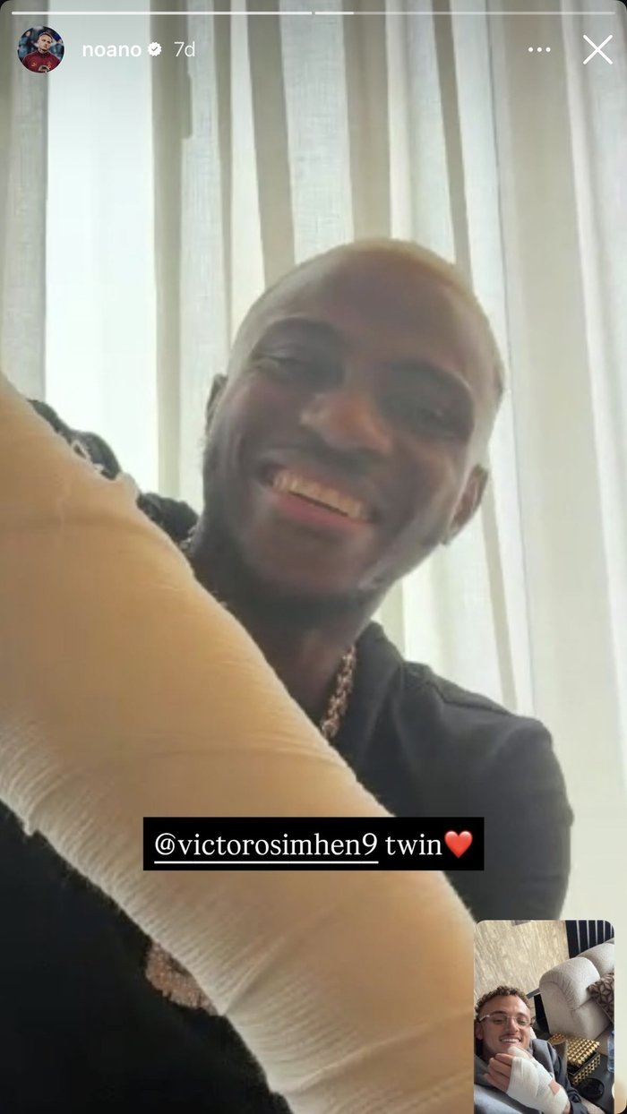 İki yıldız, maçın ardından yaşadıkları talihsiz sakatlıklar ile mücadele ederken temasta kalmayı sürdürdü. Noa Lang, Osimhen ile gerçekleştirdiği görüntülü konuşmayı “İkizim” notu ile paylaştı.