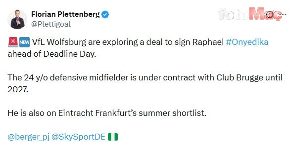 Wolfsburg’un, Onyedika transferi için Club Brugge ile görüşmelerde bulunduğu kaydedildi.