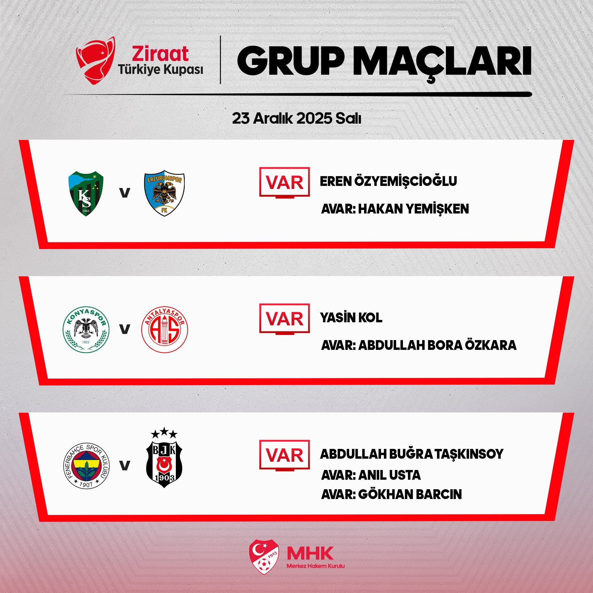 Fenerbahçe – Beşiktaş derbisinin VAR hakemi Abdullah Buğra Taşkınsoy oldu.