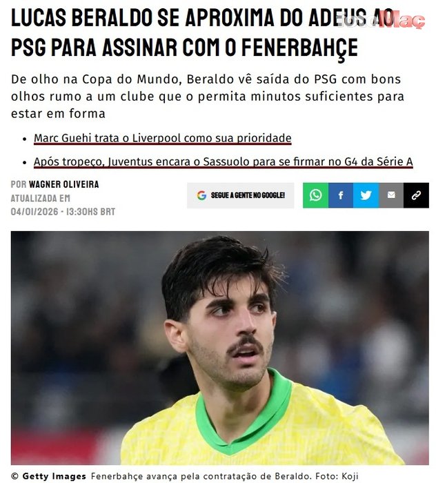 Somos Fanaticos’ta yer alan habere göre sarı-lacivertliler, PSG forması giyen Brezilyalı stoper Lucas Beraldo’yu kadrosuna katmak istiyor.