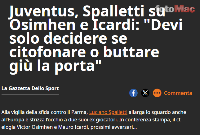 “OSIMHEN KAPIYI KIRAR, ICARDI İSE…”