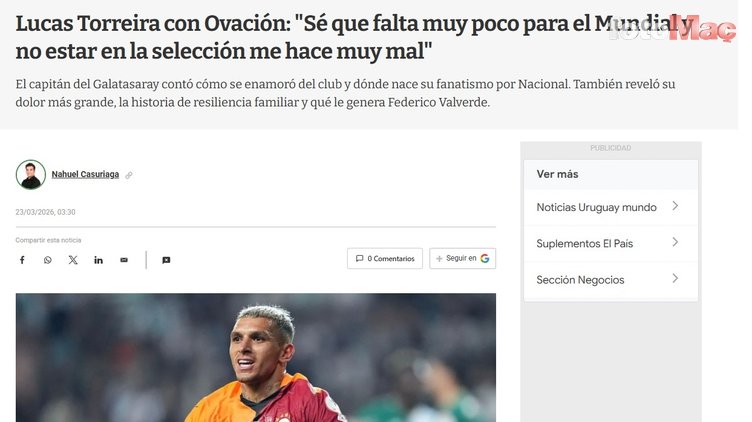 Galatasaray’ın yıldız futbolcusu Lucas Torreira, Uruguay basınına açıklamalarda bulundu.