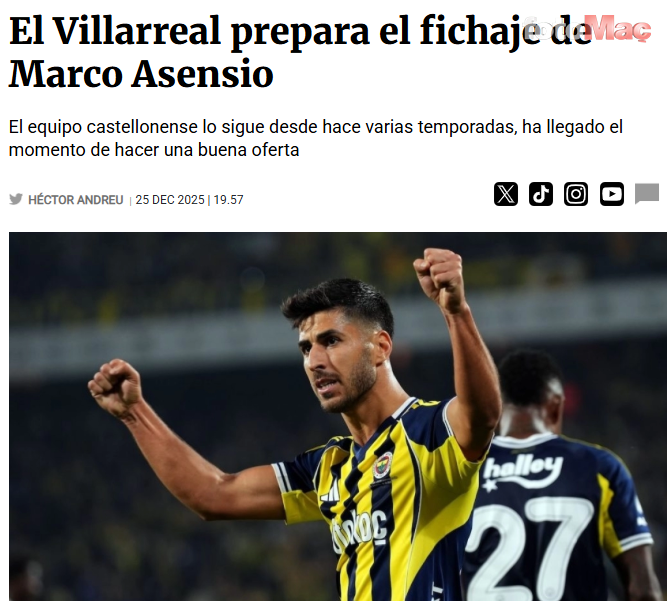 Haberde, Villarreal yönetiminin 29 yaşındaki hücum oyuncusunu gelecek sezonun merkez isimlerinden biri olarak düşündüğü ve transfer için şimdiden çalışmalara başladığı aktarıldı. Ancak Fenerbahçe cephesinin, takımın hücum gücünde kilit rol oynayan yıldız futbolcuyu kolay kolay bırakmak istemediği vurgulandı.