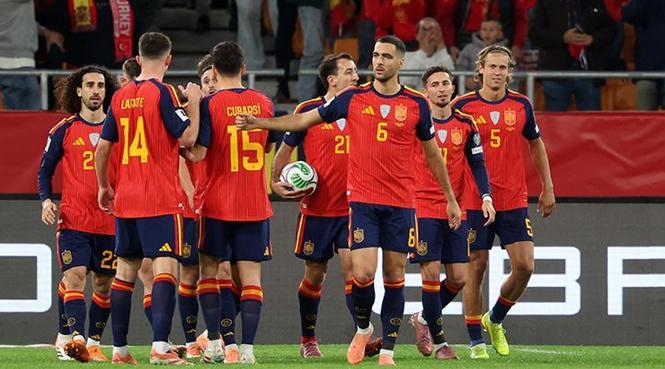 İspanya ile Konya’da oynadığımız karşılaşmada A Milli Takımımız’a karşı forma giyen isimlerden Pedri, Le Normand, Nico Williams ve Lamine Yamal, sakatlıkları sebebiyle bu akşam forma giyemeyecek. 4-0 kazanılan Gürcistan deplasmanında ayak bileği burkulan kaleci Unai Simon’un durumunun ciddi olmadığı, ancak riske edilmeyeceği tahmin ediliyor. Simon’un yerine ise David Raya’nın eldiveleri giyeceği konuşuluyor.